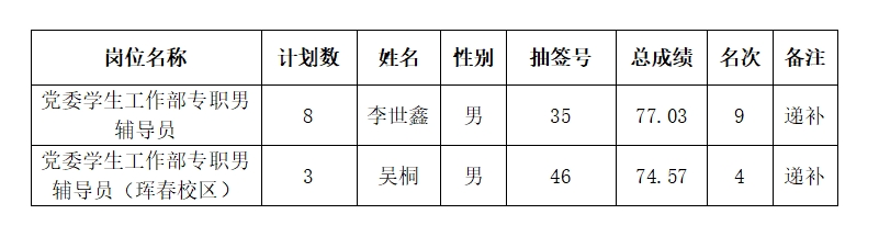 2024年延边大学公开招聘工作人员(含专项招聘高校毕业生)公告(8号)成绩递补公示