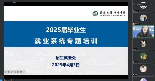 4月3日,延边大学招生就业处组织全校就业工作人员开展就业系统专题线上培训会。我校招生就业处科长姜毅主持会议。